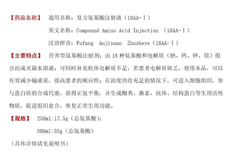 法譜 | 復(fù)方氨基酸注射液(18AA-I)