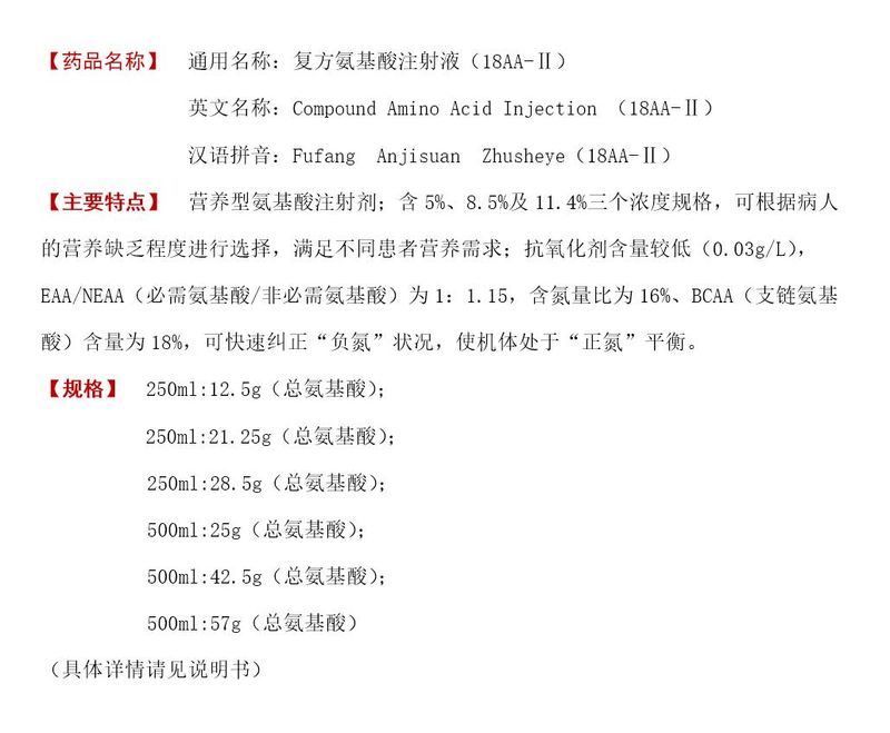 法譜 | 利日安 |利泰德安能 | 復(fù)方氨基酸注射液18AA-II